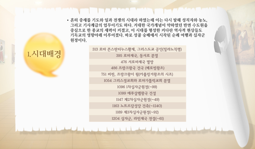 - ÈçÈ÷ Áß¼¼¸¦ ±âµµ¿Í Àϰú ÀüÀïÀÇ ½Ã´ë¶ó ÇÏ¿´´Âµ¥ ÀÌ´Â ´Ù½Ã ¸»ÇØ ¼ºÁ÷ÀÚ¿Í ³ó³ë ±×¸®°í ±â»ç°è±ÞÀÇ ¾÷¹«À̱⵵ ÇÏ´Ù. °Å´ëÇÑ ±¹°¡°³³äÀÌ ¾àÇÏ¿´´ø ¹Ý¸é ¼öµµ¿øÀ» Áß½ÉÀ¸·Î ÇÑ Á¾±³ÀÇ ¼¼·ÂÀÌ Ä¿Á³°í, ÀÌ ½Ã´ë¸¦ Çü¼ºÇÑ Ä¿´Ù¶õ ¿ª»çÀû Çö»óµéµµ ±âµ¶±³ÀÇ ¿µÇâ¾Æ·¡ ÀÌ·ç¾îÁ³´Ù. ¹Ù·Î ¼º°ñ ¼þ¹è¿¡¼ ½ÃÀÛµÈ ¼ø·Ê ¿©Çà°ú ½ÊÀÚ±º ¿øÁ¤ÀÌ´Ù.