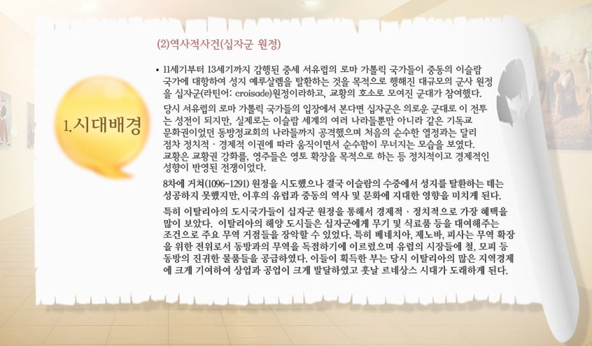 8Â÷¿¡ °ÅÃÄ(1096-1291) ¿øÁ¤À» ½ÃµµÇßÀ¸³ª °á±¹ À̽½¶÷ÀÇ ¼öÁß¿¡¼ ¼ºÁö¸¦ ŻȯÇÏ´Â µ¥´Â ¼º°øÇÏÁö ¸øÇßÁö¸¸, ÀÌÈÄÀÇ À¯·´°ú Áßµ¿ÀÇ ¿ª»ç ¹× ¹®È¿¡ Áö´ëÇÑ ¿µÇâÀ» ¹ÌÄ¡°Ô µÈ´Ù.